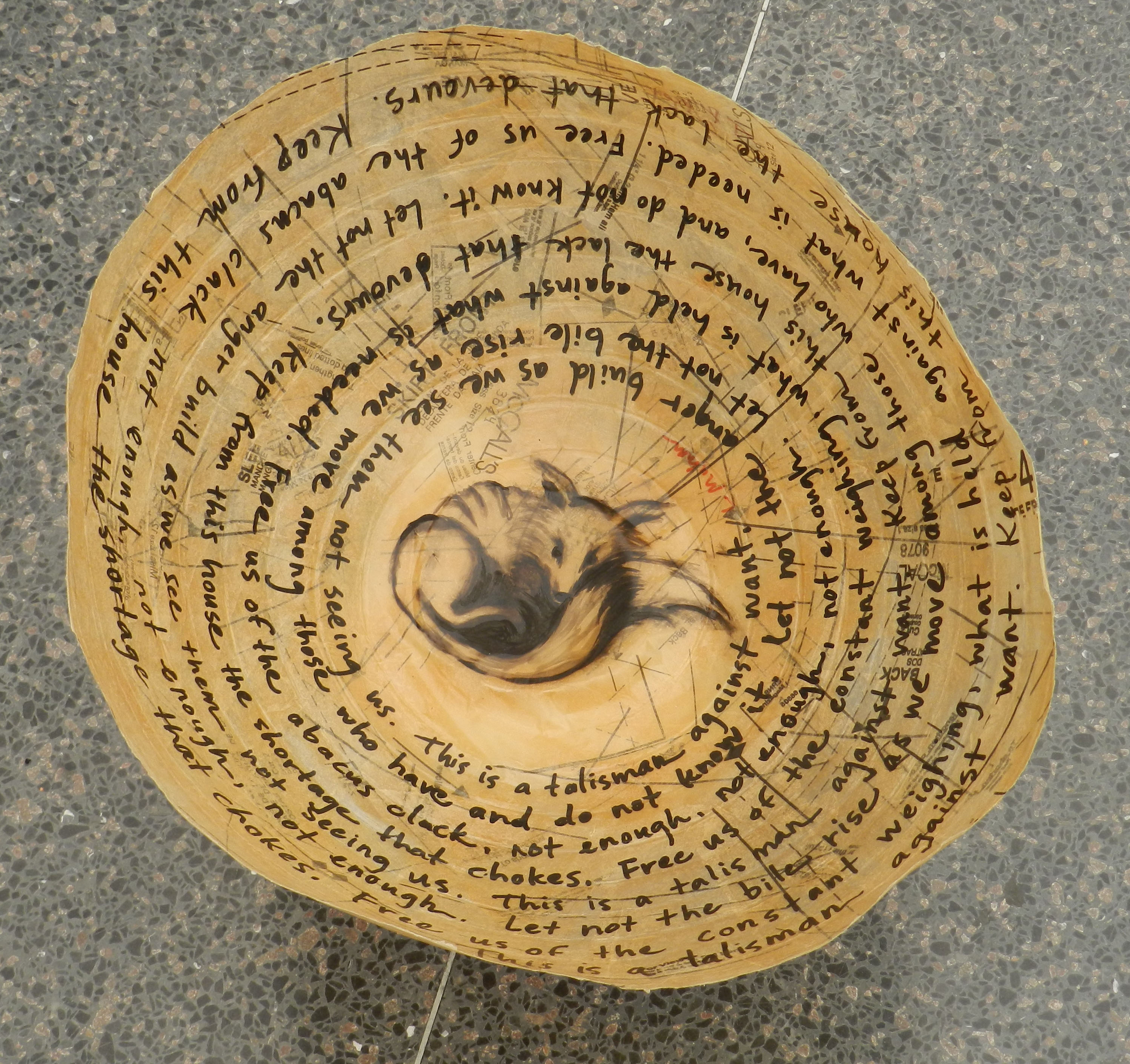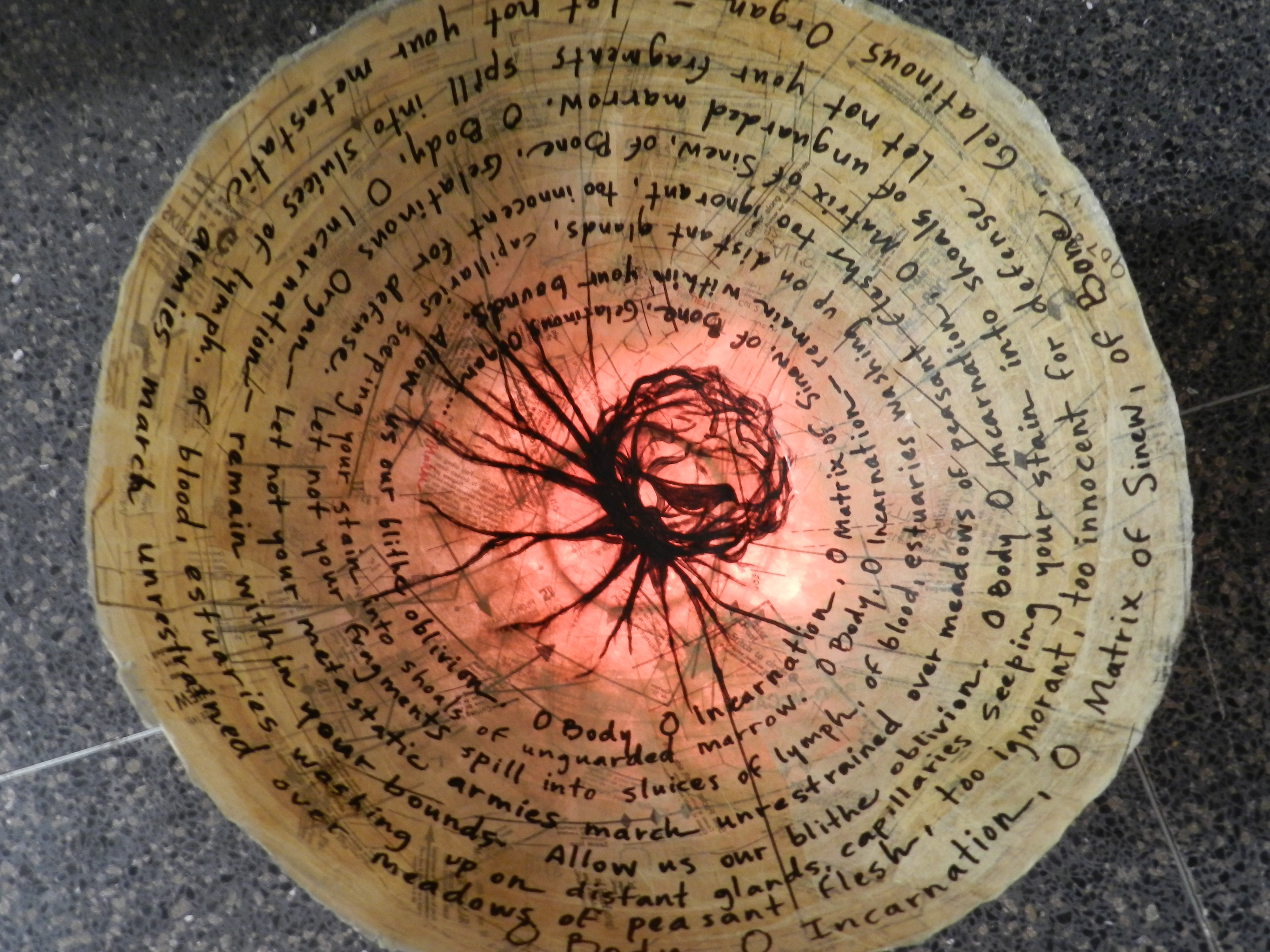 2. Community engagement connects us in unexpected and lovely ways. Fellow artist, Minnesota native, and Cedar Crest Art professor and department chair, Jill Odegaard, led a community engagement project in conjunction with our exhibit. 100 college student and staff bowls, made from paper pulp, clay and mixed-mediums and inscribed with their own writing against fears, were on display in the entrance of the gallery. Most of the bowls were created by students for art courses, but a few were created by college staff. Students started with an online Skype writing workshop with LouAnn, and then made bowls. Later, Cedar Crest staff were invited to participate in bowl-making too… bonding ensued. And, we’re told, the closing reception was more highly attended than usual. A student shared with us the story about how she got to know a staff member from another department at one of these community bowl-making workshops, and they were excited to find out just how much they have in common and exchanged phone numbers. New connections that may not happen otherwise–this was a whole new scale of collaboration for us, and we thank Jill for teaching us more about it! (NY Times article, The Art of Community Engagement.)