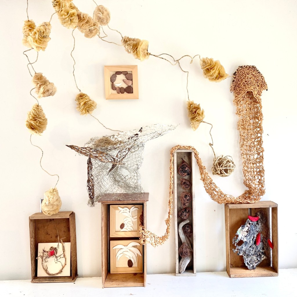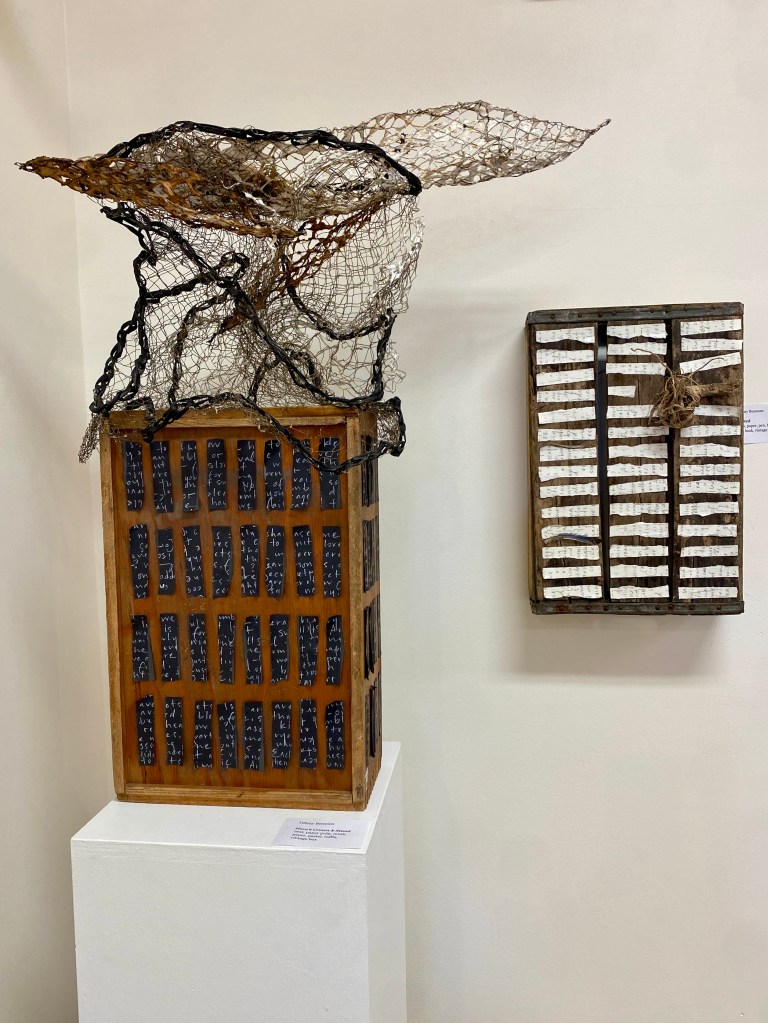 At the Armory Gallery in Park Rapids, MN August-September 2024, the mixed-media Wall of Artifacts and accompanying Rising Panels has become a non-linear timeline of memories and stories. It is evidence of life lived, arranged and connected to form a life of its own.